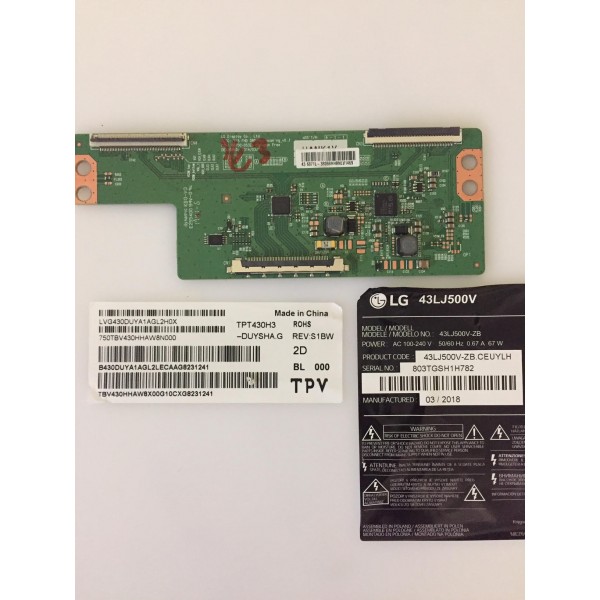 tcon 6870c-0532a 43 6871l-38068h hank1v 3806bh panel tpt430h3-duysha.g lvg430duya1agl2h0x tv lg 43lj500v